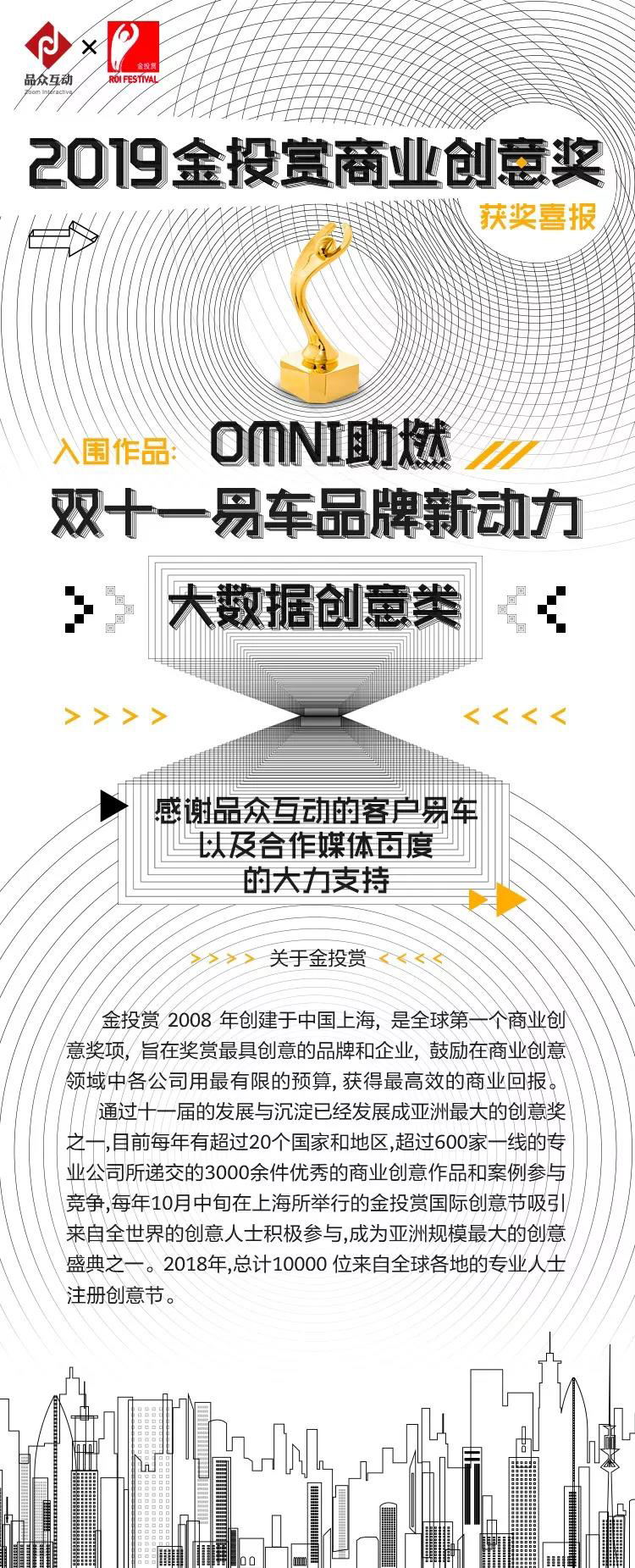 祝賀品眾互動易車案例入圍2019金投賞商業創意獎