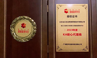 品眾互動被正式授權為阿(a)里文娛(yu)智能營銷平臺2019年度(du)(du)KA核心代(dai)理商,2019年度(du)(du)KA金融行業(ye)代(dai)理商,并(bing)摘得2019年度(du)(du)睿智貢獻卓(zhuo)越獎(jiang),以及優秀合作伙(huo)伴兩項榮譽!