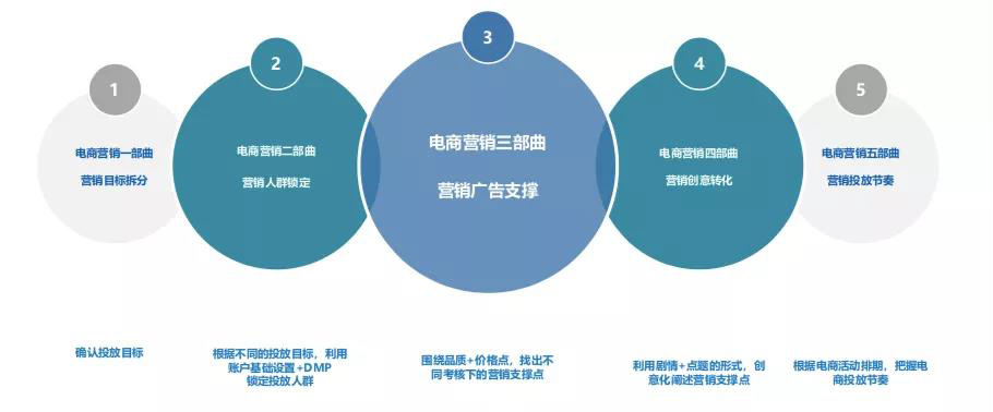 通過營銷目(mu)標拆(chai)分、營銷人(ren)群鎖定、營銷廣(guang)告支撐、營銷創意轉化和營銷投放節(jie)奏,匯集成電商營銷五部曲,從而(er)有效的通過數據分析和精(jing)準投放為廣(guang)告主完(wan)成傳播和銷量的雙向回報。