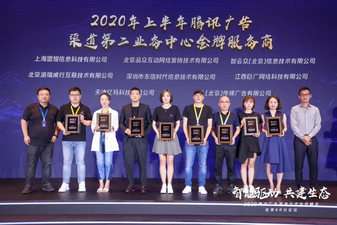 昨日(8月18日),在上海隆重開幕的“智慧融合 共生未來 – 2020騰訊廣告渠道合作伙伴峰會”上,品眾創新作為騰訊廣告重要的合作伙伴,品眾CEO-王娜、KA銷售副總裁-霍遠、華東KA事業部總經理-張婷受邀到場參會。與此同時,品眾創新依托多年專業領域的運營服務經驗以及在創新能力、技術投入能力、行業深耕能力以及品效協同的營銷模式探索上的突出表現,榮獲騰訊廣告渠道生態合作部2020上半年效果KA服務商官方金牌頭銜!