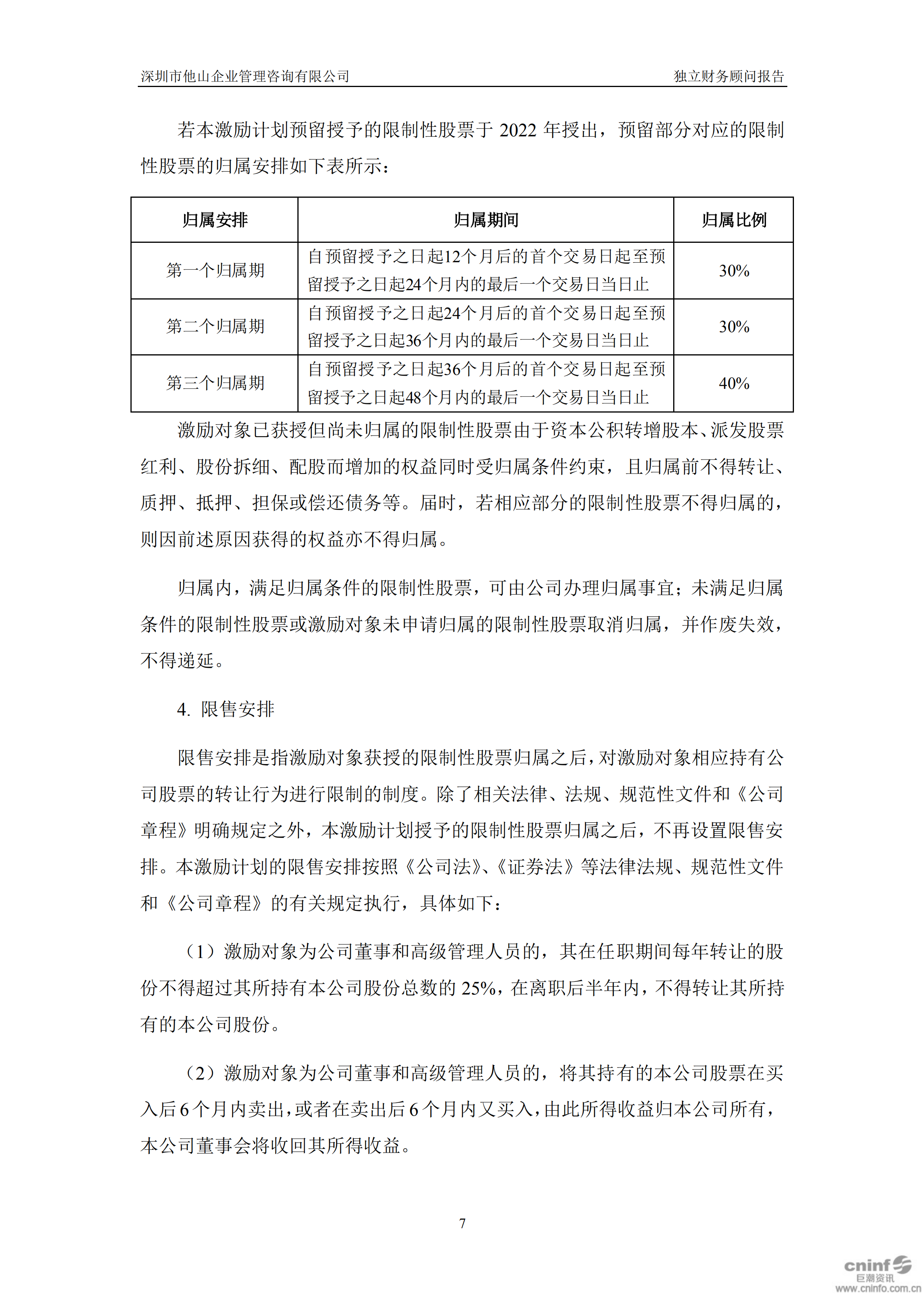 深圳市他山企業管理咨詢有限公司關于公司第二期限制性股票激勵計劃(草案)的獨立財務顧問報告