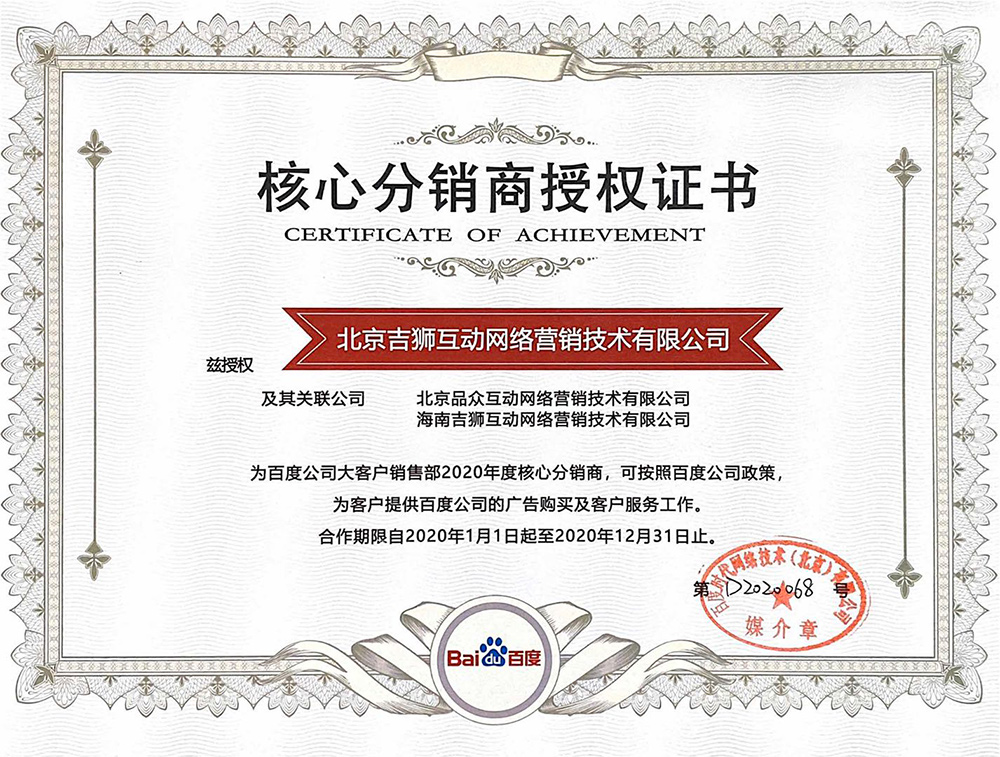 作(zuo)為多年來始終與百度(du)緊(jin)密攜手的合作(zuo)伙(huo)伴,品眾互動(dong)蟬聯百度(du)2020年度(du)KA核心代理商,并在會上被授(shou)予牌(pai)照。