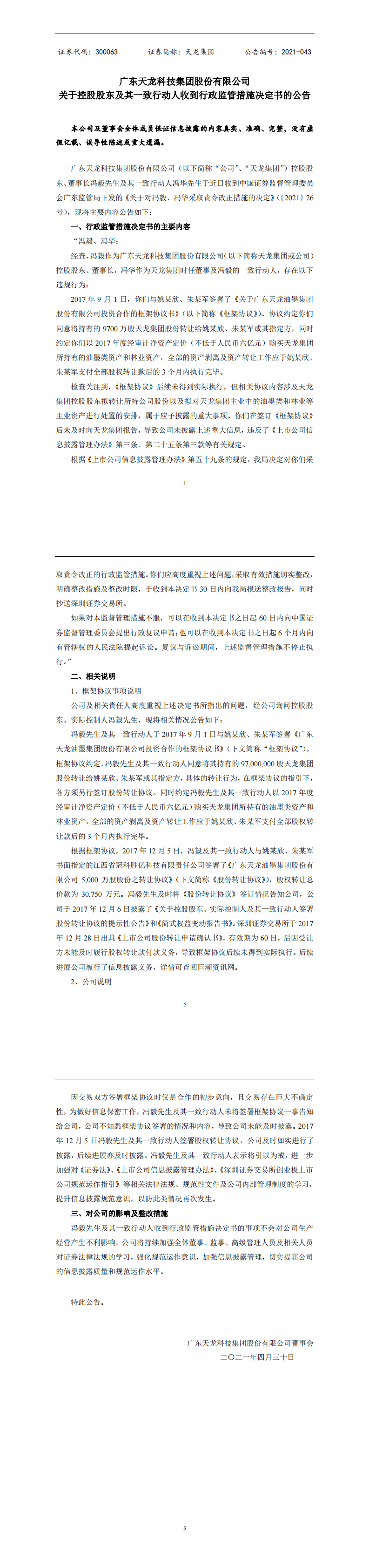 關于控股股東及其一致行動人收到行政監管措施決定書的公告