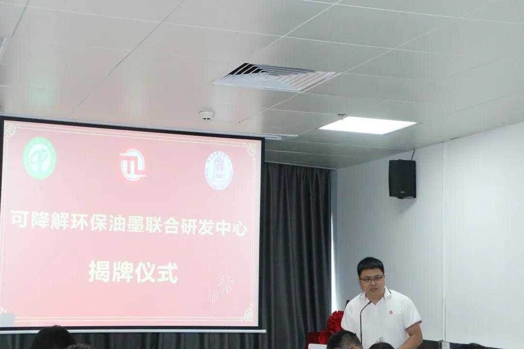 儀式開始前(qian),三(san)方代表(biao)(biao)致(zhi)辭。公(gong)司總(zong)經(jing)理蔡(cai)威在致(zhi)辭中(zhong)對可(ke)降解環保油(you)墨聯(lian)合(he)研發(fa)中(zhong)心(xin)成(cheng)(cheng)立表(biao)(biao)示熱(re)烈祝賀,并(bing)希(xi)望各方集聚力量(liang)建(jian)設好聯(lian)合(he)研發(fa)中(zhong)心(xin),推(tui)動環保油(you)墨領(ling)域的發(fa)展。三(san)方代表(biao)(biao)就合(he)作(zuo)共建(jian)事宜達成(cheng)(cheng)一致(zhi)。