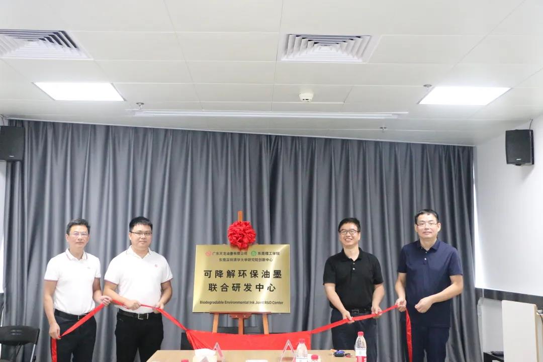 2021年8月20日,廣(guang)東(dong)(dong)天(tian)龍油墨(mo)(mo)有限公司-東(dong)(dong)莞(guan)理工(gong)學院(yuan)(yuan)-清華東(dong)(dong)莞(guan)創新中(zhong)(zhong)心可(ke)(ke)降解環(huan)保(bao)油墨(mo)(mo)聯合(he)研(yan)(yan)發(fa)中(zhong)(zhong)心揭牌(pai)儀式(shi)在東(dong)(dong)莞(guan)理工(gong)學院(yuan)(yuan)科技創新研(yan)(yan)究院(yuan)(yuan)順利舉行。公司總(zong)經理蔡威,副(fu)(fu)總(zong)經理、可(ke)(ke)降解環(huan)保(bao)油墨(mo)(mo)聯合(he)研(yan)(yan)發(fa)中(zhong)(zhong)心副(fu)(fu)主(zhu)任王綱,以及產品(pin)中(zhong)(zhong)心和研(yan)(yan)發(fa)中(zhong)(zhong)心的產品(pin)經理及高級工(gong)程(cheng)師(shi)出席揭牌(pai)儀式(shi)。東(dong)(dong)莞(guan)理工(gong)學院(yuan)(yuan)化學工(gong)程(cheng)與能源技術(shu)學院(yuan)(yuan)院(yuan)(yuan)長徐勇軍,副(fu)(fu)院(yuan)(yuan)長尹輝斌,清華東(dong)(dong)莞(guan)創新中(zhong)(zhong)心副(fu)(fu)主(zhu)任鄔新國,可(ke)(ke)降解環(huan)保(bao)油墨(mo)(mo)聯合(he)研(yan)(yan)發(fa)中(zhong)(zhong)心主(zhu)任程(cheng)可(ke)(ke)可(ke)(ke),副(fu)(fu)主(zhu)任呂天(tian)一等出席揭牌(pai)儀式(shi)。