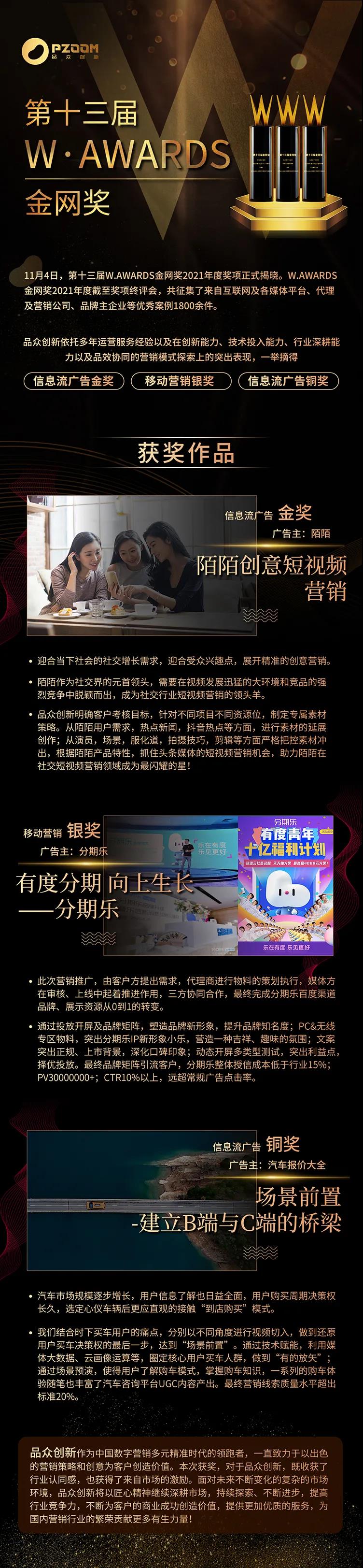 硬核營銷!品眾創新成功斬獲2021W.AWARDS金網獎金銀銅獎