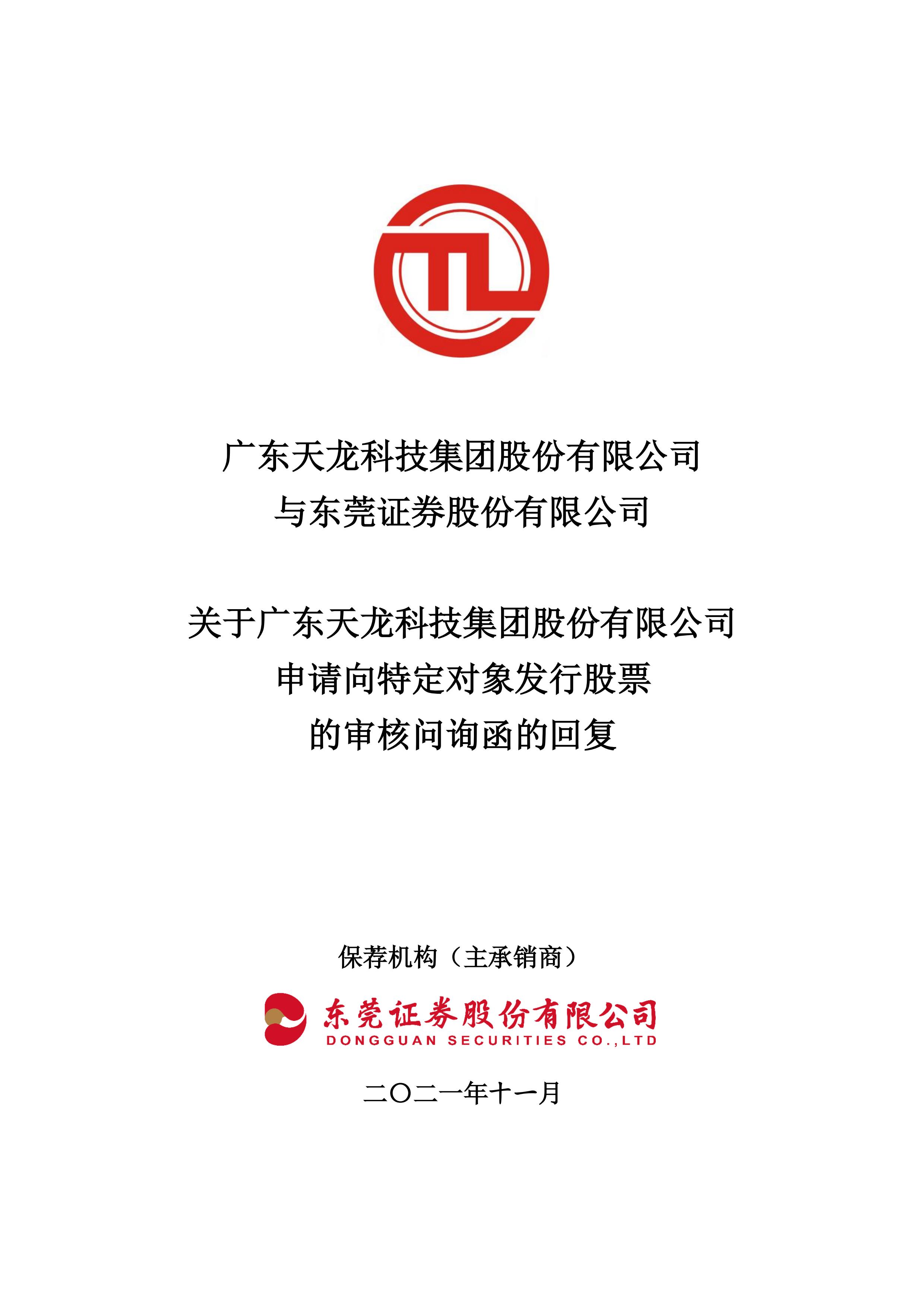 關于廣東天龍科技集團股份有限公司申請向特定對象發行股票審核問詢函的回復