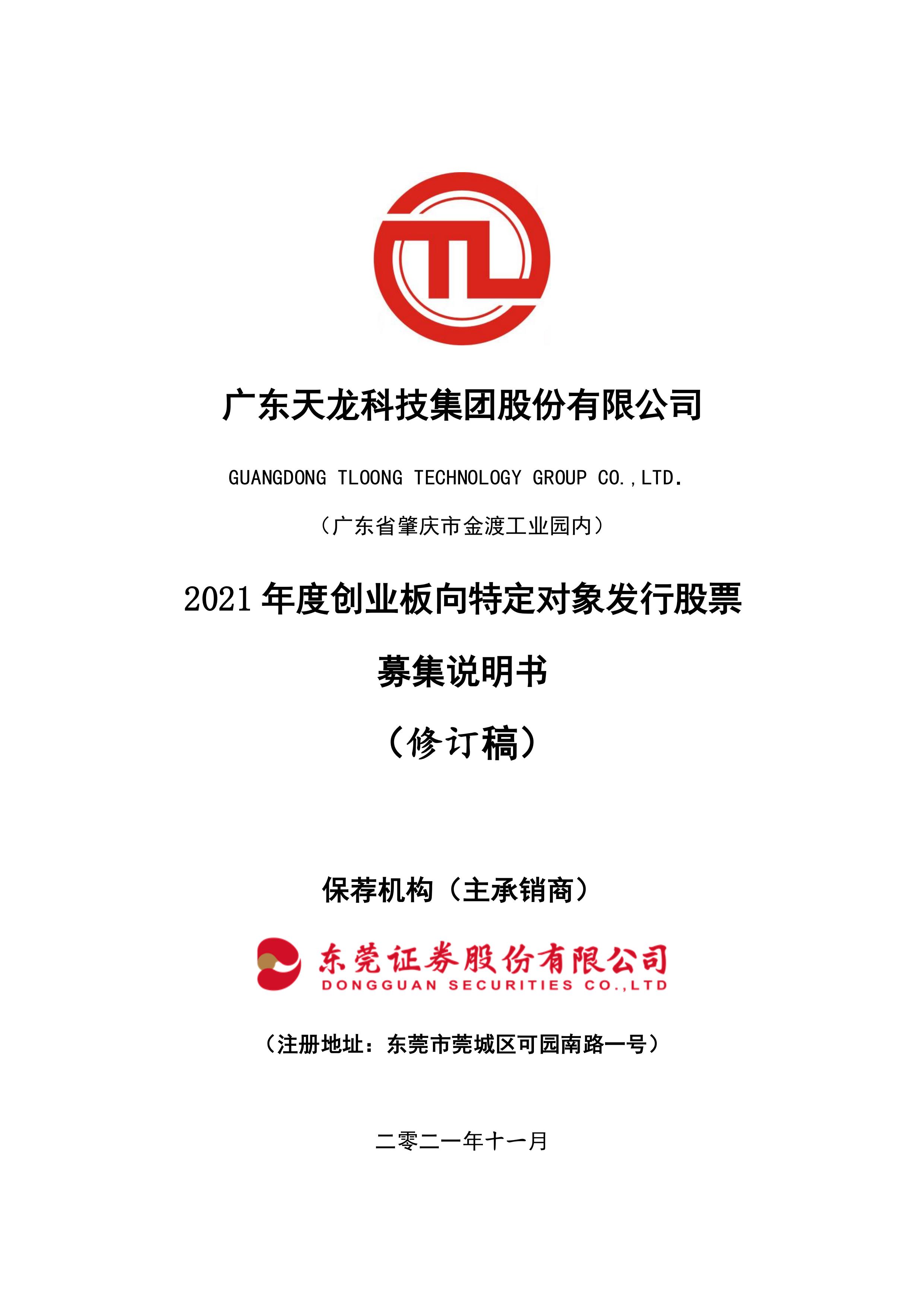 廣東天龍科技集團股份有限公司2021年度創業板向特定對象發行股票募集說明書(修訂稿)