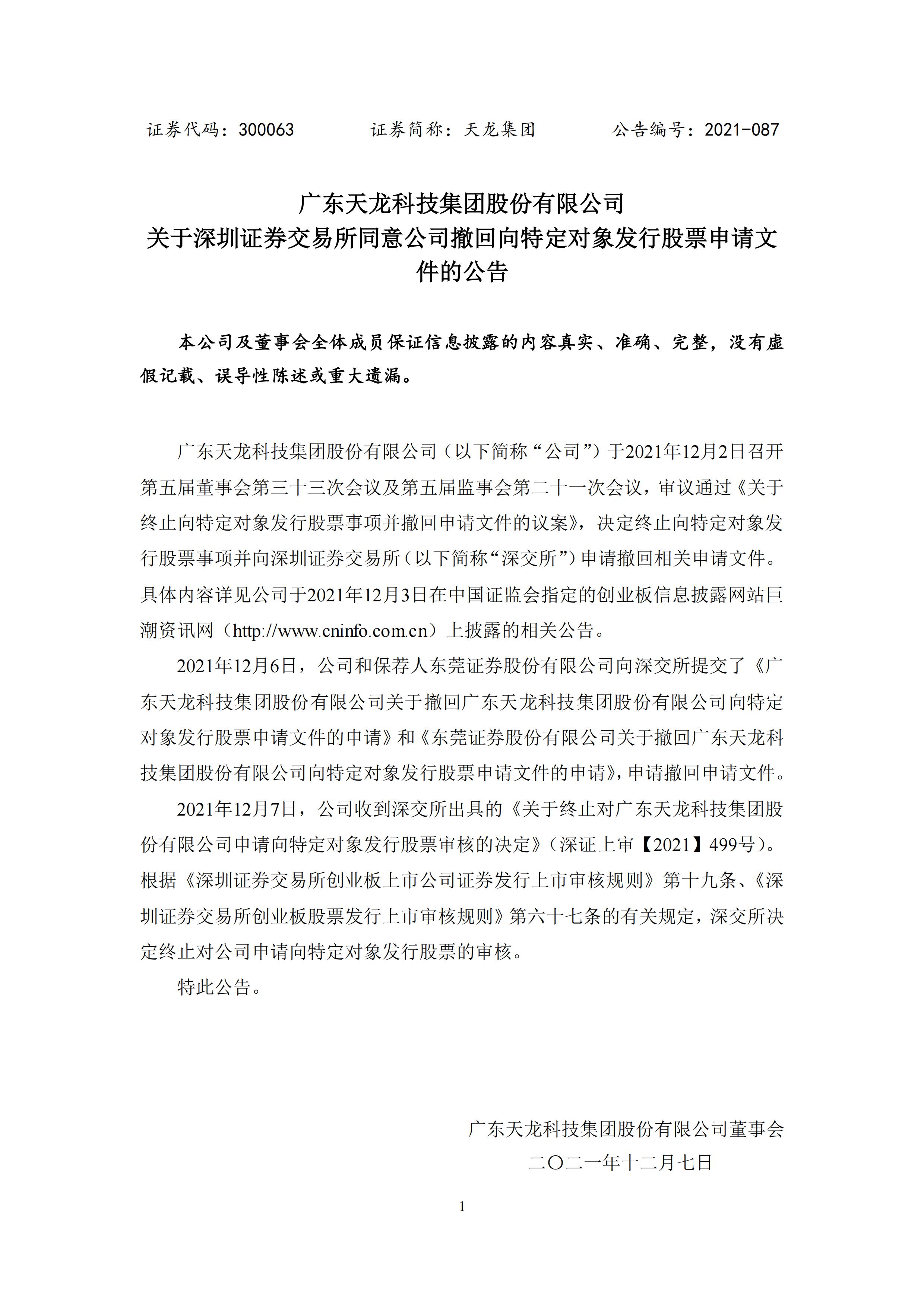 關于深圳證券交易所同意公司撤回向特定對象發行股票申請文件的公告