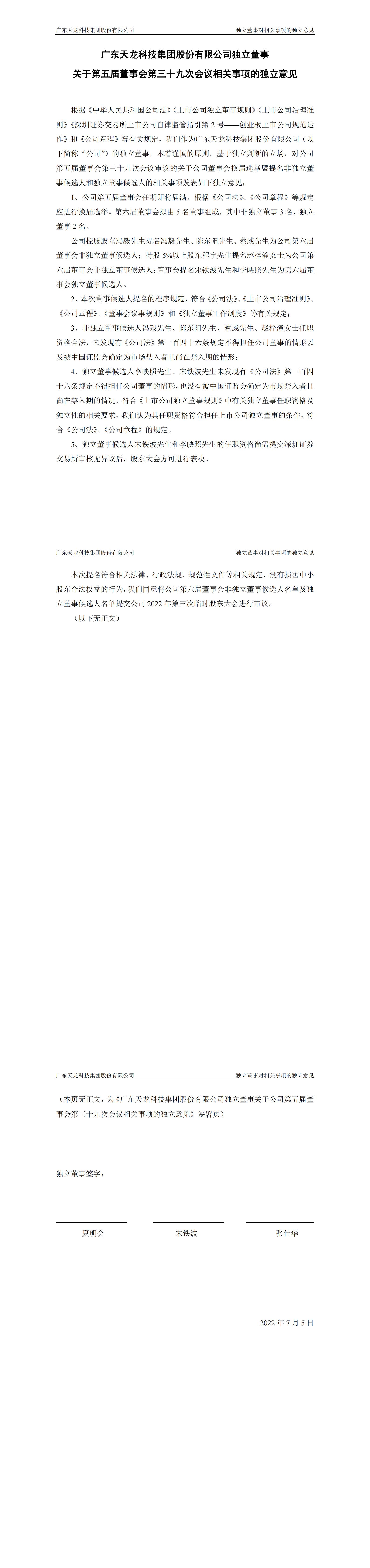 獨立董事關于第五屆董事會第三十九次會議相關事項的獨立意見