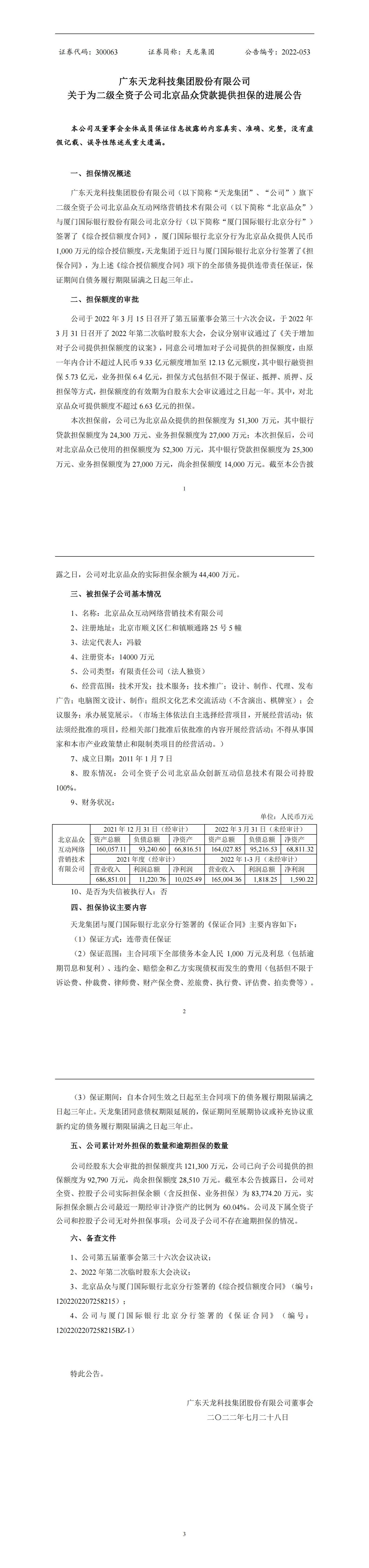 關于為二級全資子公司北京品眾貸款提供擔保的進展公告