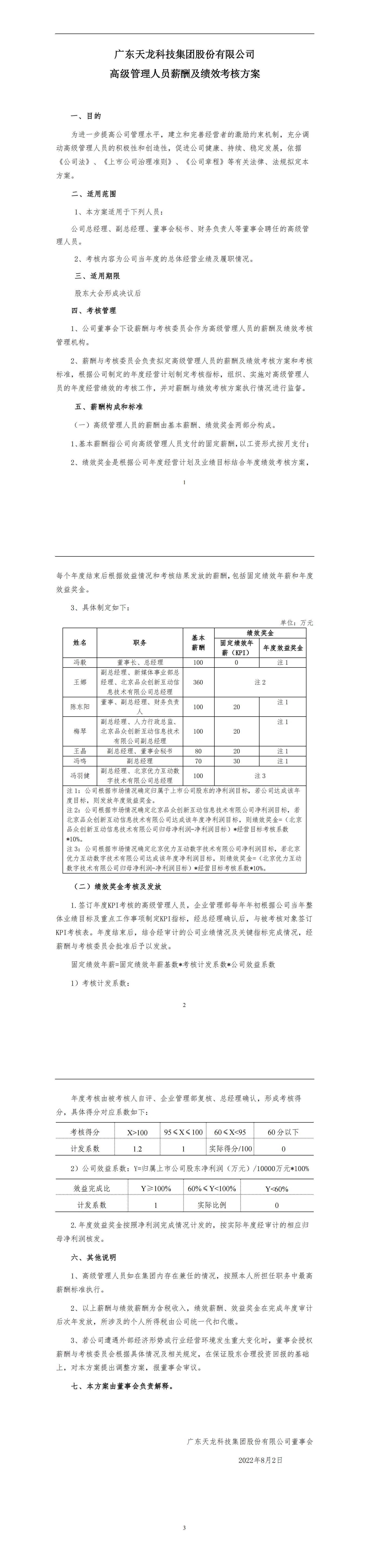 高級管理人員薪酬及績效考核方案