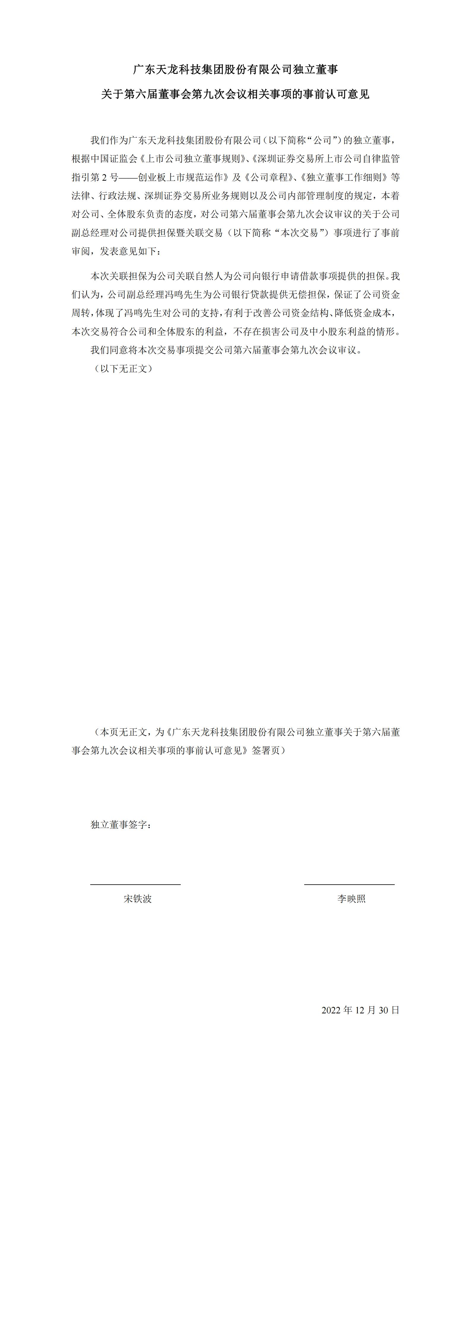 獨立董事關于公司第六屆董事會第九次會議相關事項的事前認可意見