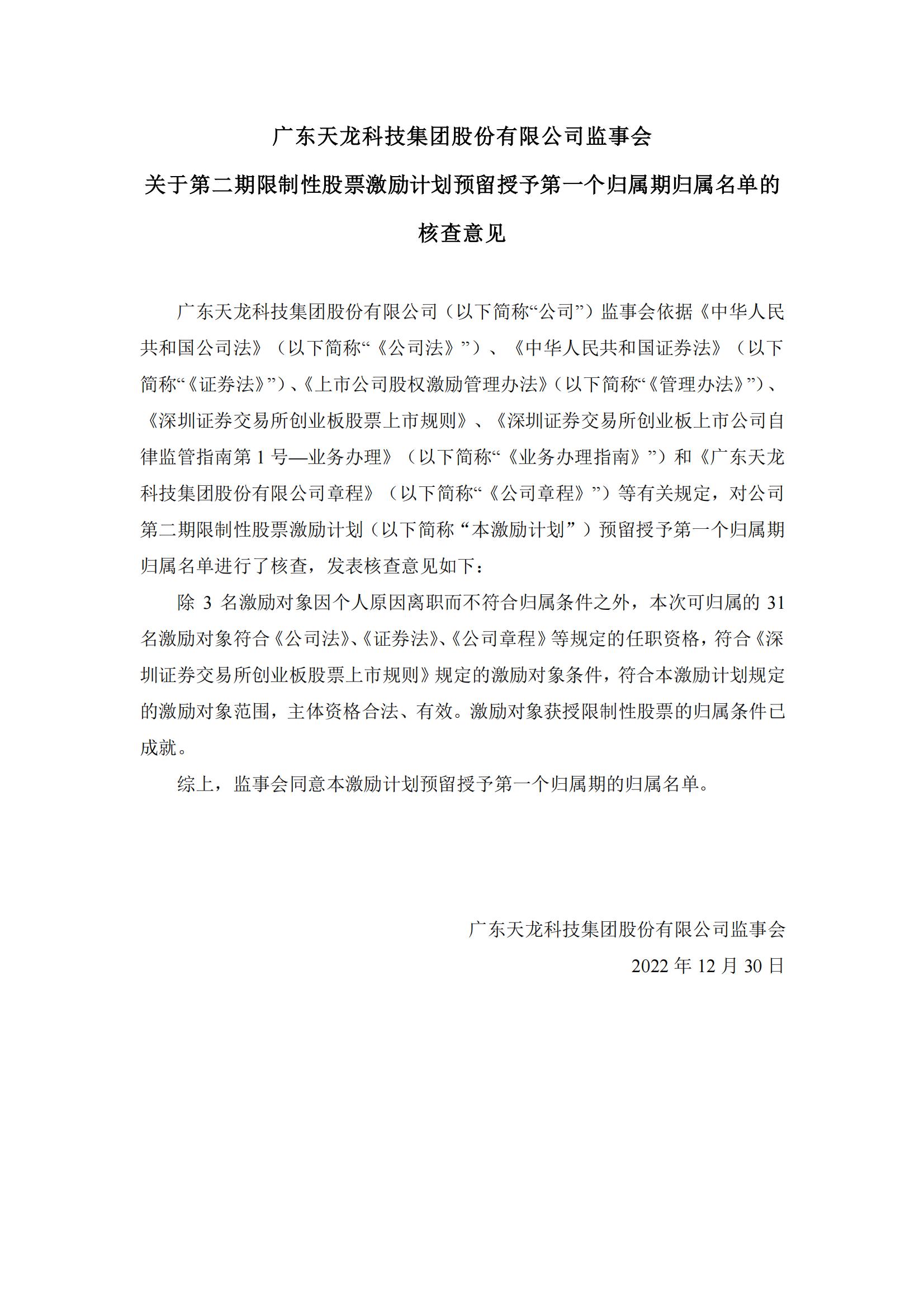 監事會關于第二期限制性股票激勵計劃預留授予第一個歸屬期歸屬名單的核查意見