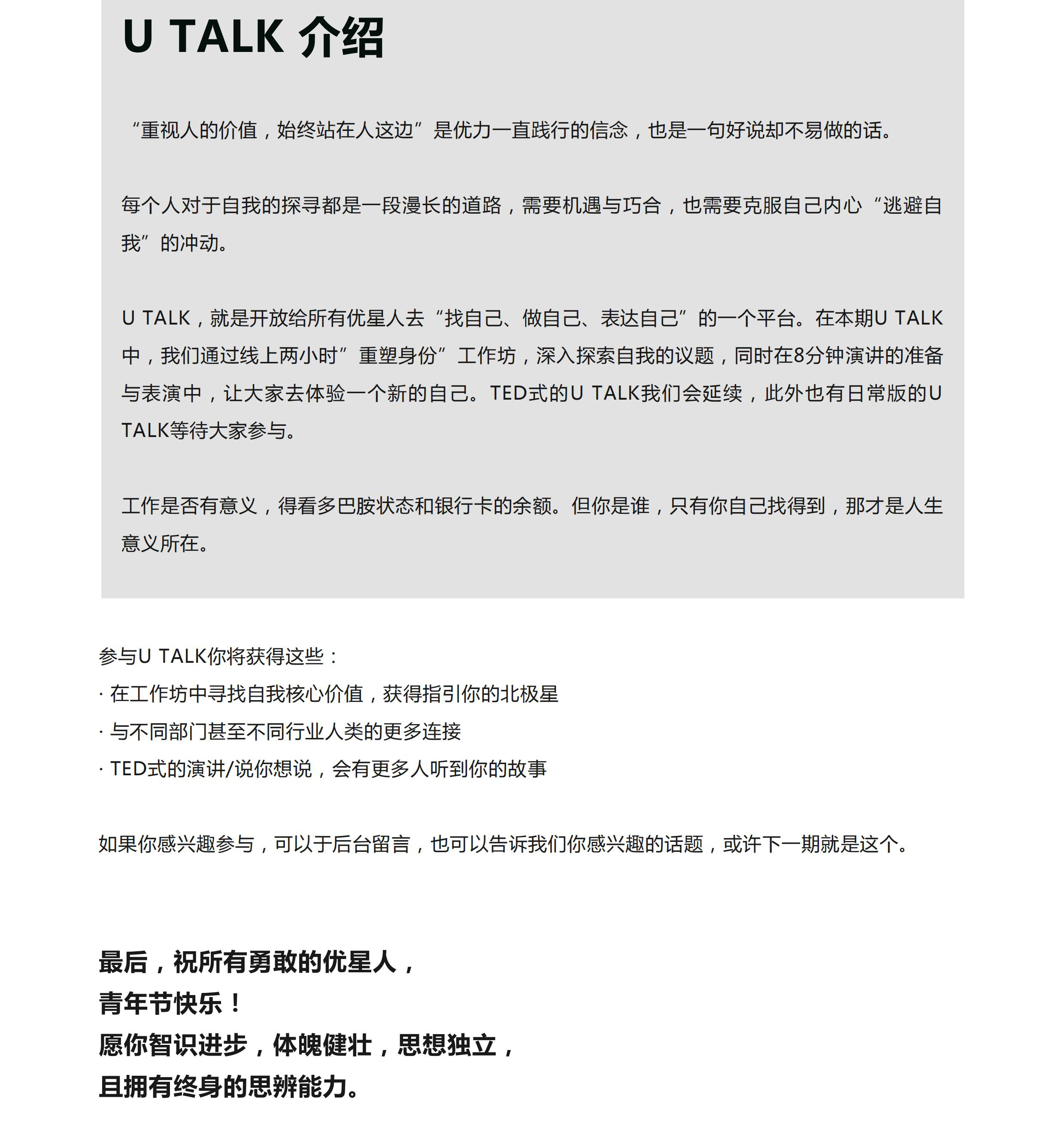 優力互動丨U TALK _ 優力青年,請繼續Be U!