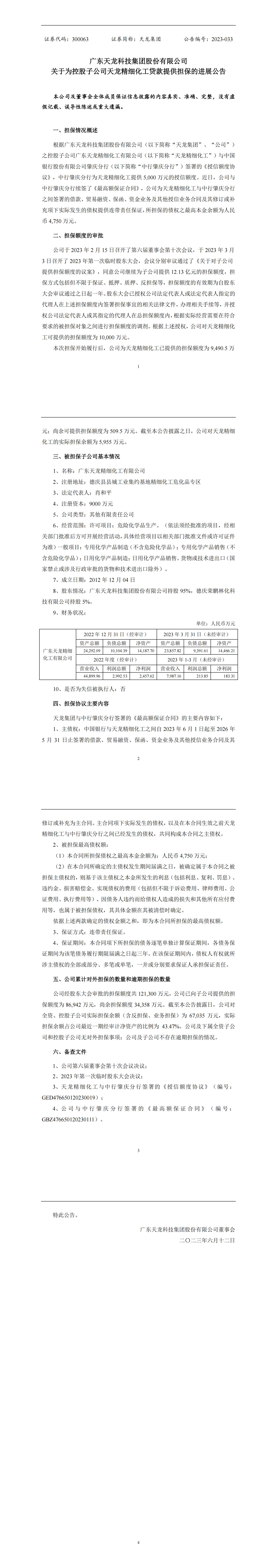 關于為控股子公司天龍精細化工貸款提供擔保的進展公告