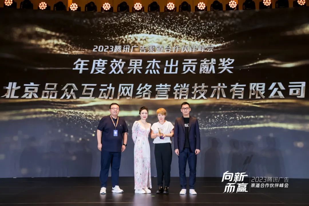 在行業同仁及各界嘉賓的見證下,品眾創新榮獲“2023騰訊廣告渠道合作伙伴峰會- 效果杰出貢獻獎”。