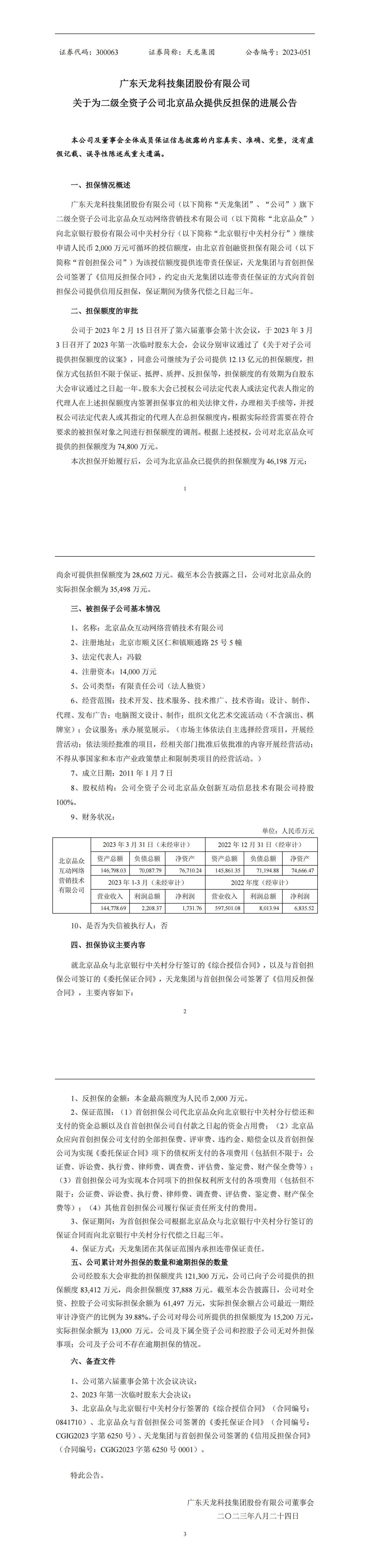 關于為二級全資子公司北京品眾提供反擔保的進展公告