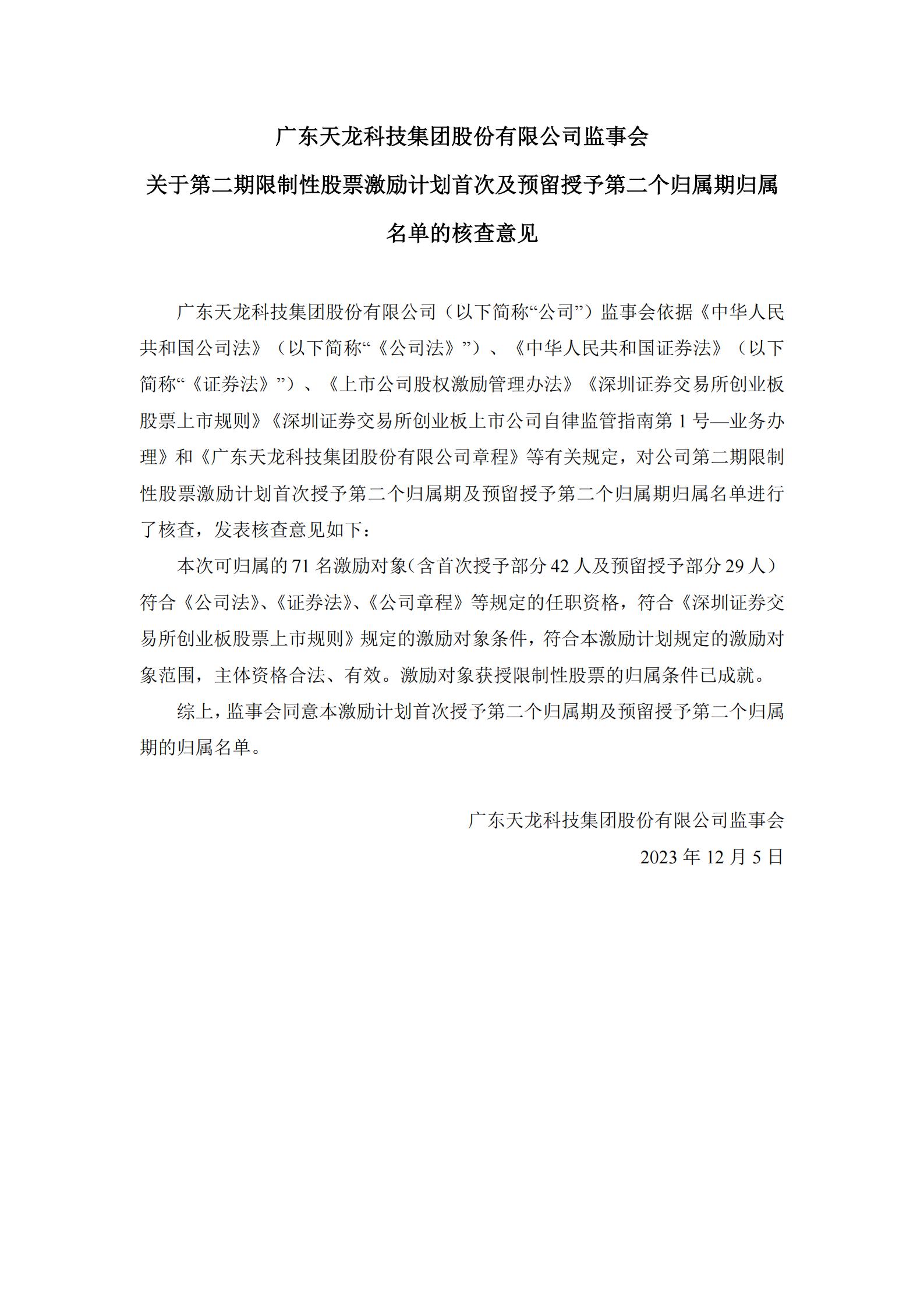 監事會關于第二期限制性股票激勵計劃首次及預留授予第二個歸屬期歸屬名單的核查意見