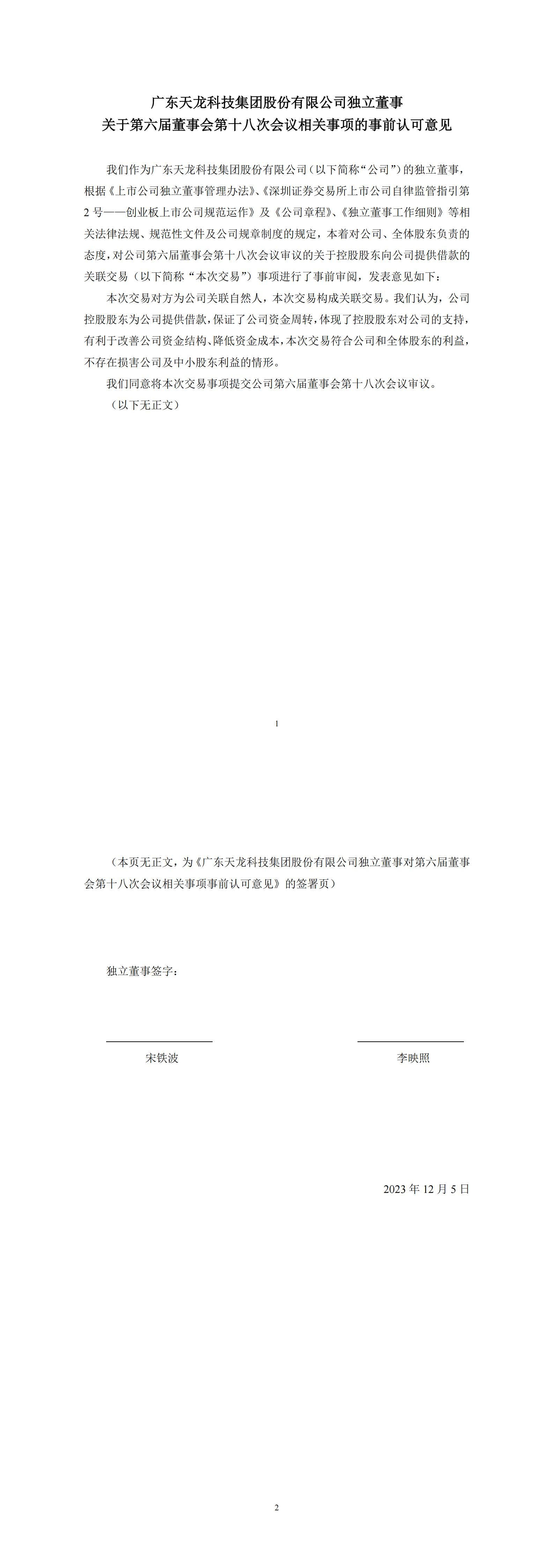 獨立董事關于第六屆董事會第十八次會議相關事項的事前認可意見