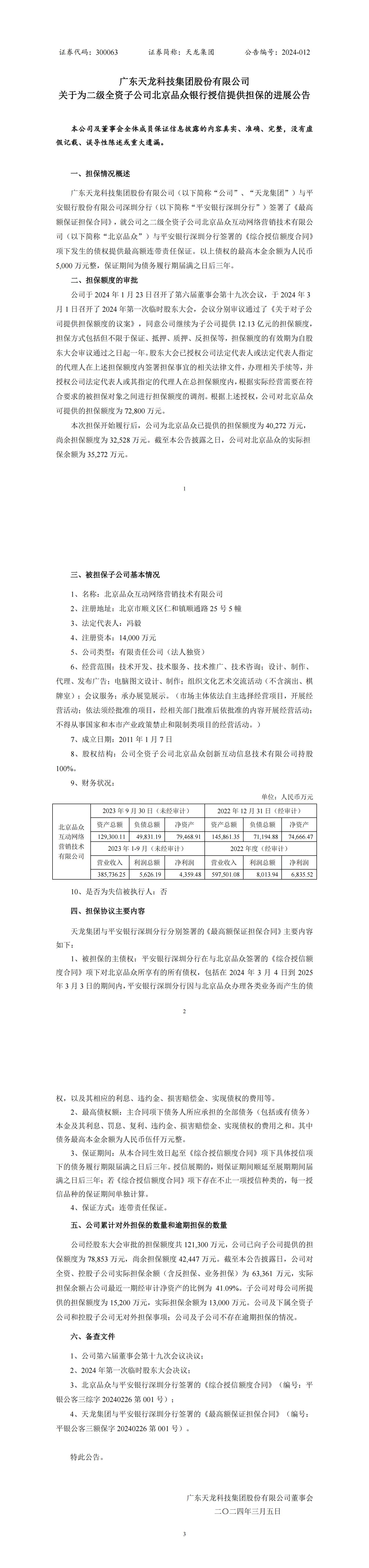 關于為二級全資子公司北京品眾銀行授信提供擔保的進展公告