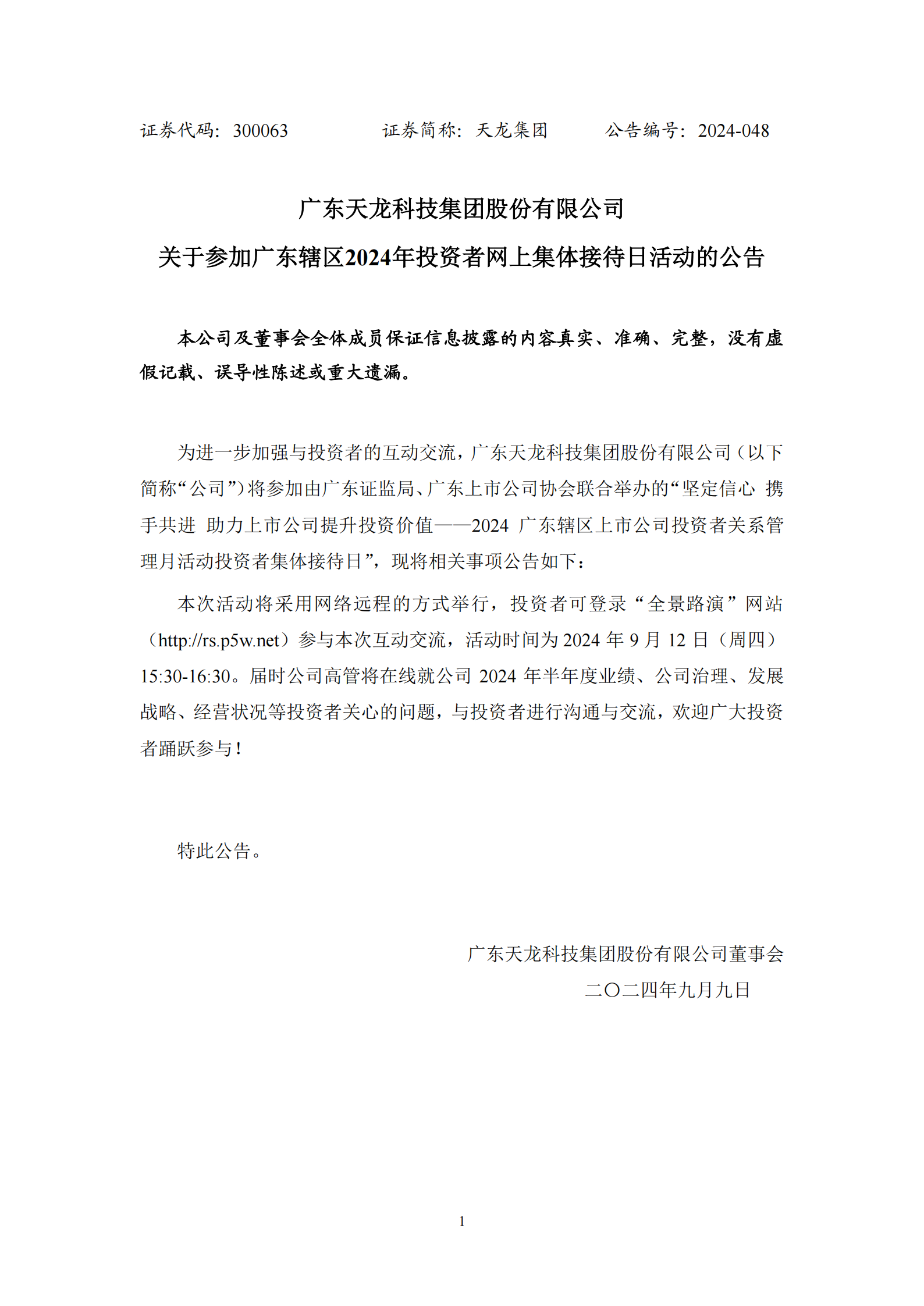 關于參加廣東轄區2024年投資者網上集體接待日活動的公告