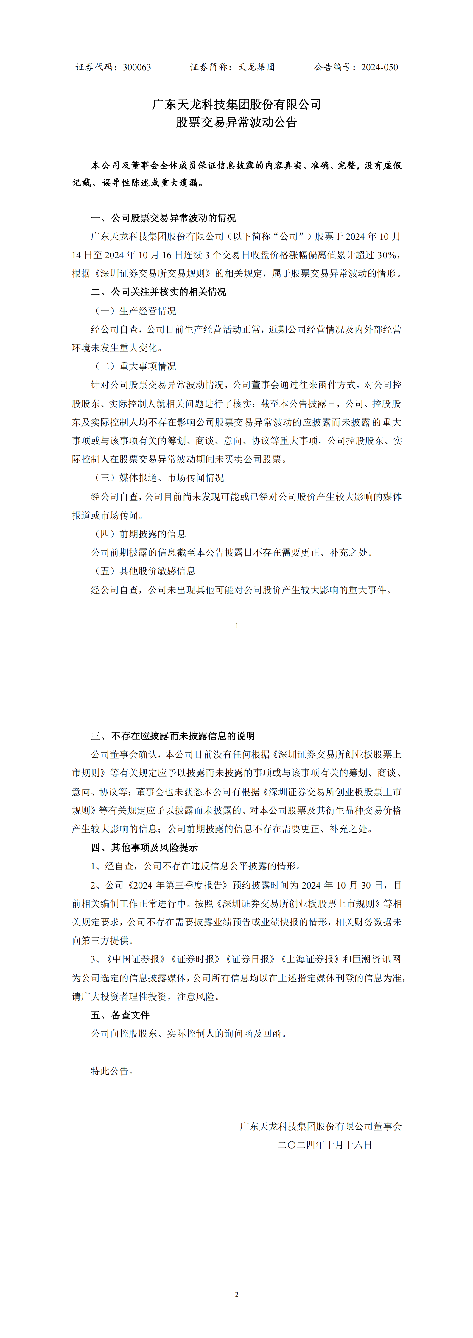 股票交易異常波動公告