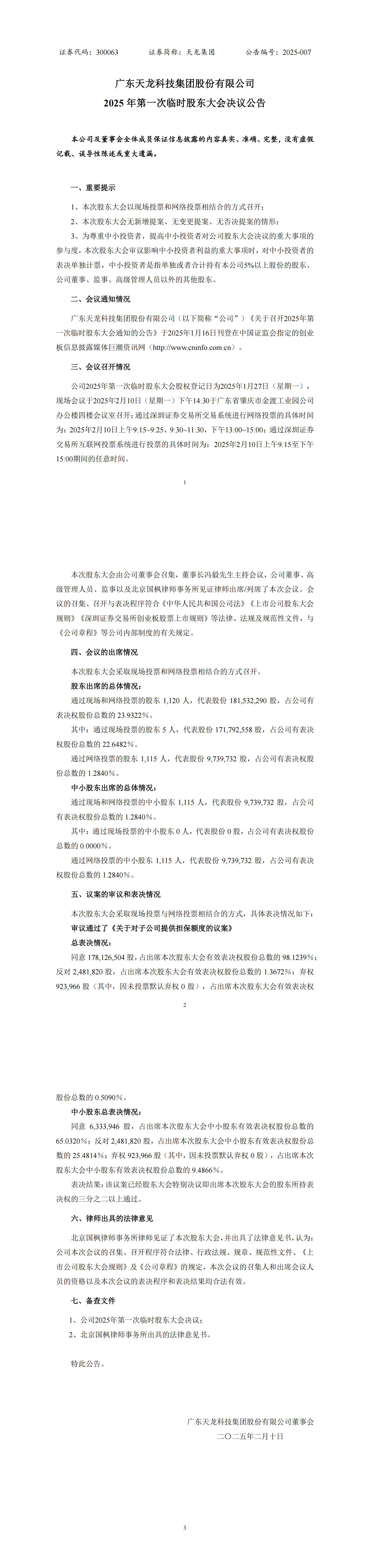 2025年第一次臨時股東大會決議公告