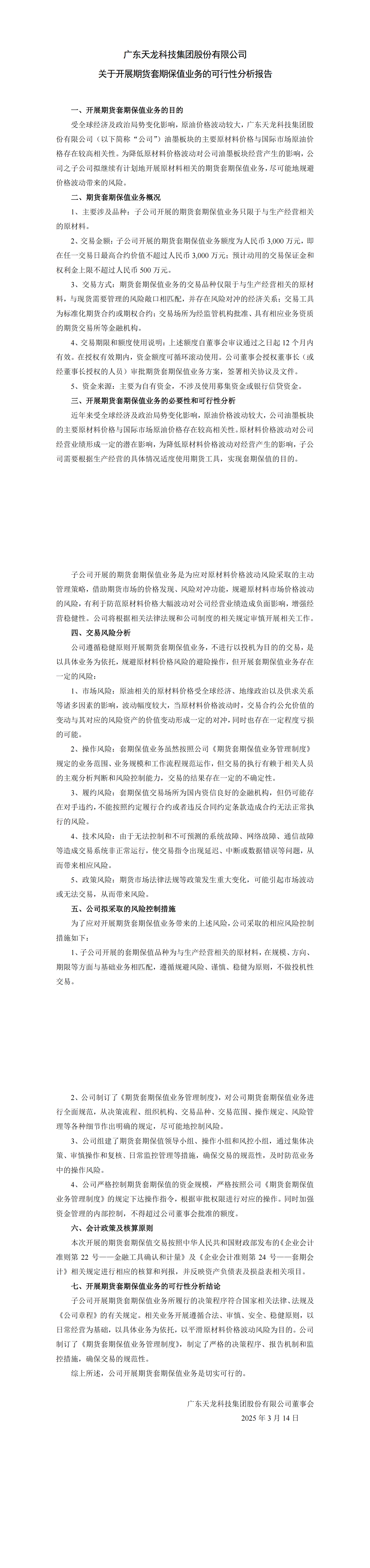廣東天龍科技集團股份有限公司關于開展期貨套期保值業務的可行性分析報告
