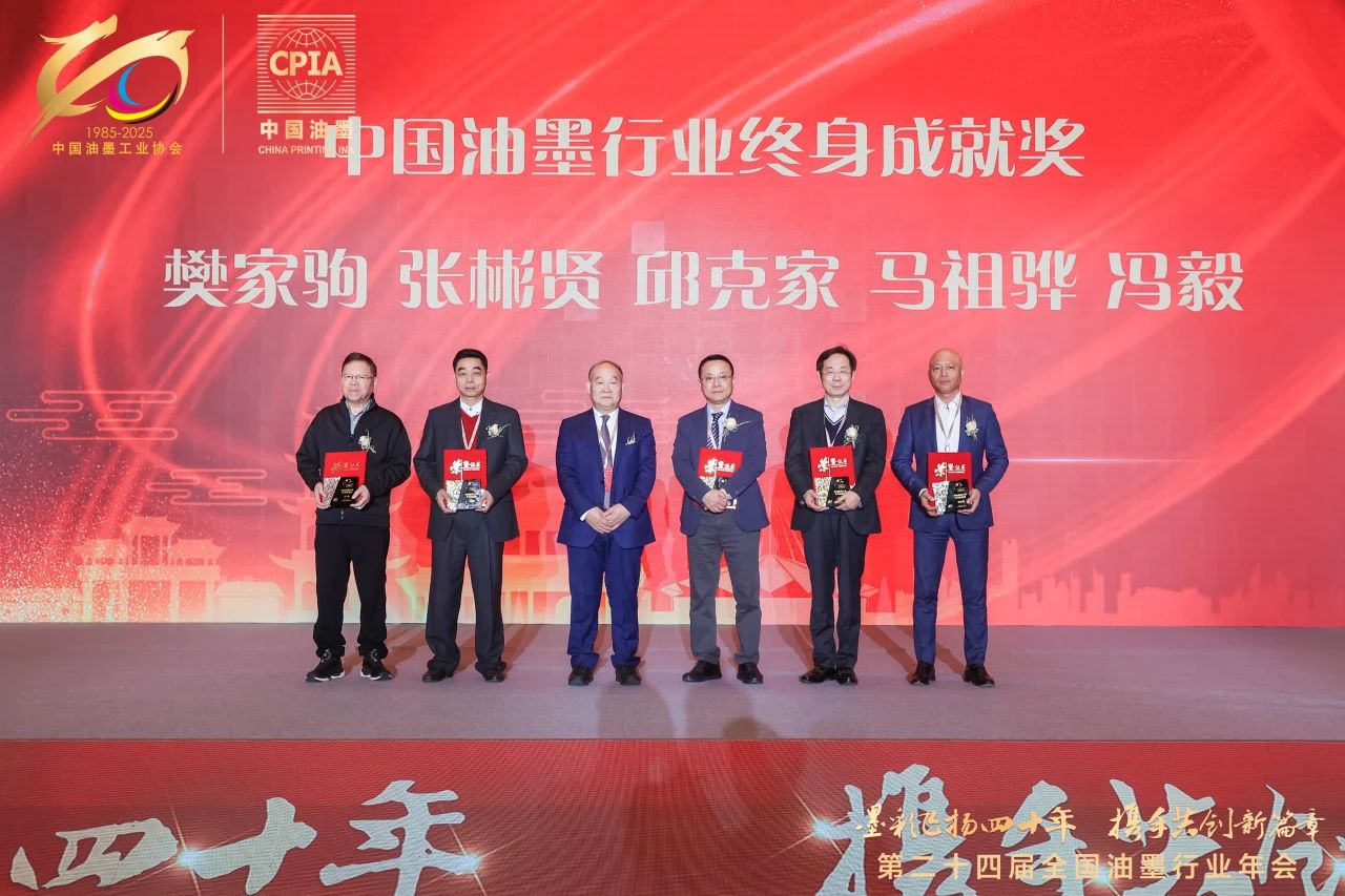 圖:董(dong)事長馮毅(右一)榮(rong)獲“油(you)墨行業終身(shen)成就獎”